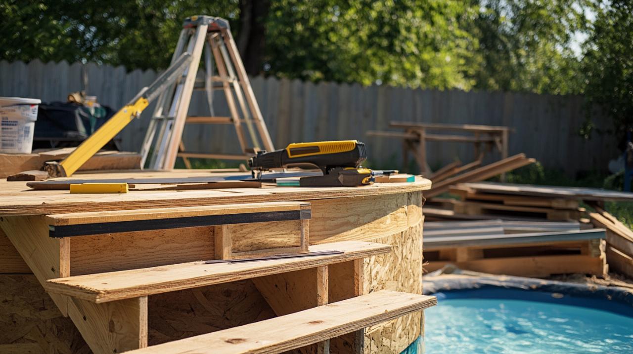 Antes de poner manos a la obra, es esencial dedicar tiempo a planificar cada detalle de tu proyecto. El éxito de la construcción de una escalera de madera radica en la precisión de las mediciones y en la elección acertada de los materiales. Una planificación cuidadosa te permitirá evitar errores costosos y garantizar que la estructura final sea tanto funcional como visualmente atractiva. Recuerda que cada piscina elevada tiene sus particularidades, por lo que tu escalera debe adaptarse a las dimensiones específicas de tu instalación.